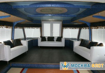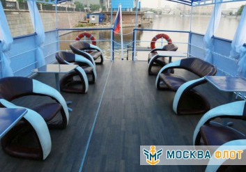 На прогулочной террасе корабля удобно провести культурно-познавательную программу с гидом, устроить встречный фуршет или сделать красочные фотоснимки в ожидании чашечки с вкусным кофе. Палуба надежно укрыта от осадков навесной конструкцией и заполнена функциональной мягкой и столовой мебелью.