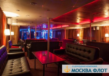 Теплоход имеет очень вместительный банкетный зал. Здесь прекрасно умещаются традиционная столовая мебель и оборудование для проведения грандиозного мероприятия. Установлена концертная сцена, съемный пилон для акробатических танцев, гримерная комната и вся необходимая аппаратура для атмосферного и полноценного отдыха. А в случае усталости всегда можно воспользоваться спальными каютами, укомплектованными телевизорами, системой кондиционирования и даже джакузи. Перед сном есть возможность посетить сауну, которая расположена на одном этаже с пассажирскими каютами. Для дополнительного комфорта в сауне оборудованы кают-компания и массажная комната.
